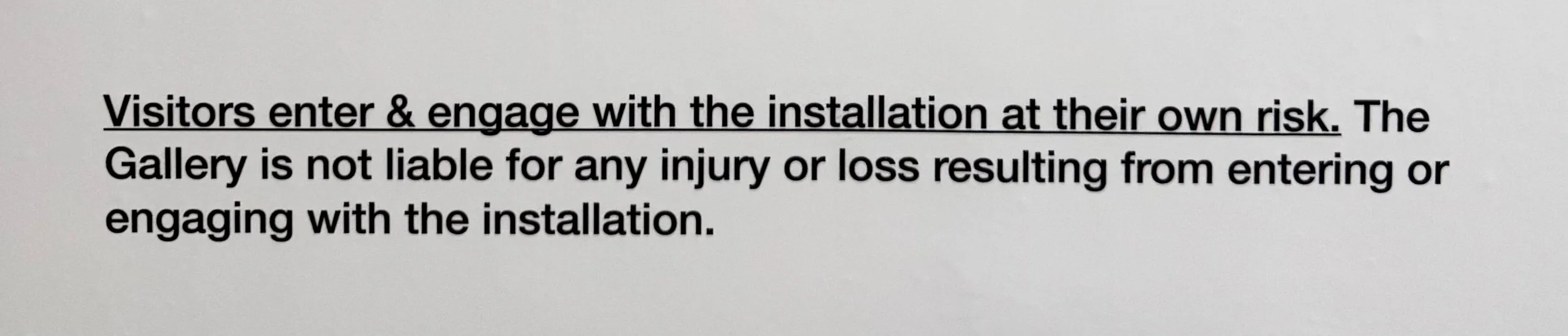 Observant and/or litigious readers will have noted that you need not be a twat to risk potential death. You simply have to enter the artworks. You’d assume that nuance shifts the liability onto the artist or gallery, but apparently not. So… let’s examine the risks.