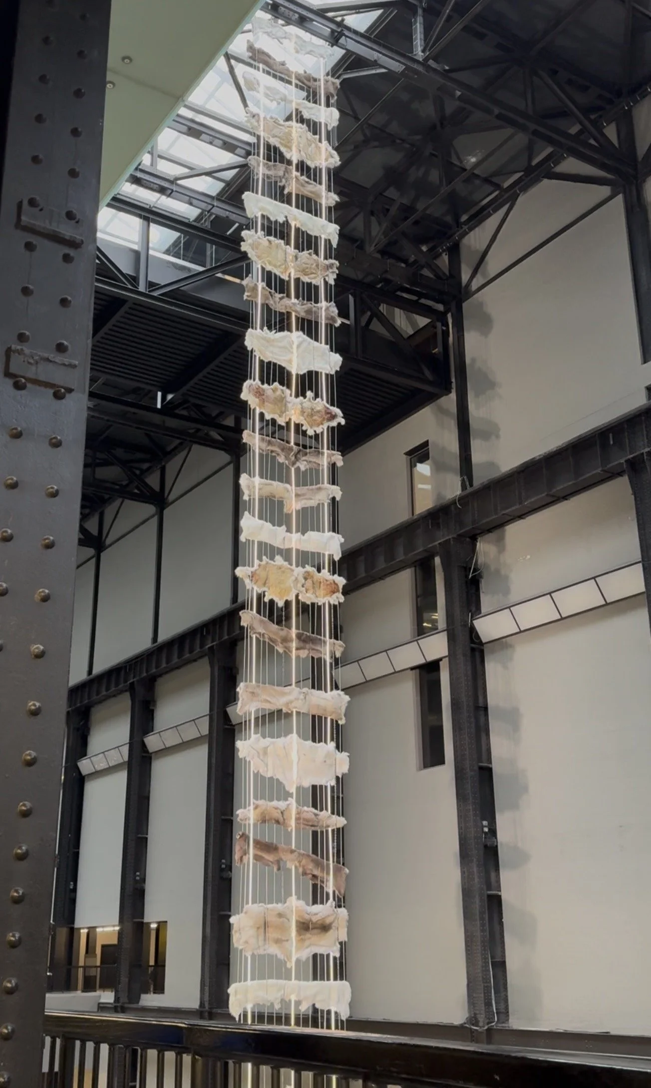 Once you get past bag check at the main entrance to the Tate Modern you’ll encounter what appears to be a vertical conveyor belt displaying reindeer pelts. It looks like something you might see in the bathroom floor-mat department at a fully automated IKEA. It is underwhelming in both simplicity and curatorial laziness, because this is now the fourth Turbine Hall installation in a row that can be categorised as Large Hanging Fabric Display.